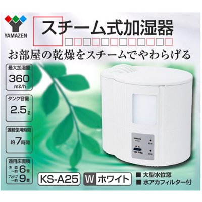●●●スチームでお部屋の空気をやわらげる♪ヤマゼン スチーム式加湿器 KS-A25 ホワイト